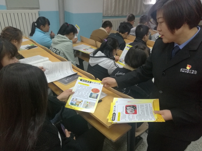 为进一步提升大学生的识毒、防毒、拒毒意识,切实加强校园毒品预防教育工作,实现“学生不吸毒,校园无毒品”的目标,七里河区食品药品监督管理局龚家湾街道食药所执法人员走进兰州理工大学技术工程学院,开展以“认真学习宣传贯彻党的十九大精神,携手共筑禁毒防线”为主题的禁毒预防教育宣讲活动。积极号召广大同学们认真学习宣传党的十九大精神,不断增强积极参与禁毒人民战争的自觉性、主动性,告诫同学们“珍爱生命、远离毒品”,启发和引导同学们坚守“无毒青春,健康生活”的信念。通过此次宣传活动在校园内积极营造了倡导健康人生,共筑禁毒防线舆论氛围。 |