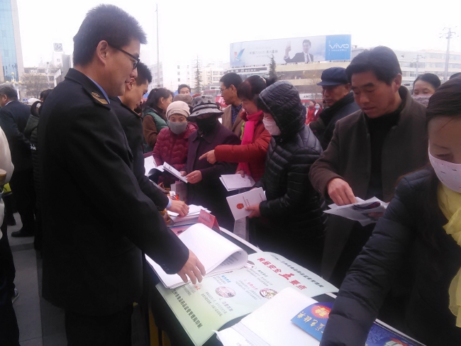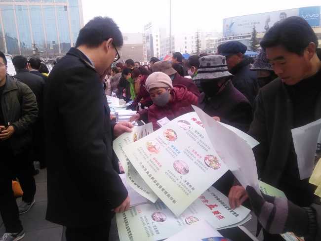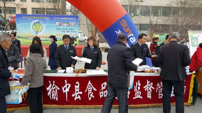 “3.15”国际消费者权益保护日,榆中县食品药品监督管理局组织执法人员在县健身广场开展了食品药品安全知识宣传活动。 活动现场通过悬挂横幅,设立食品药品咨询、投诉、举报台,发放宣传资料、现场受理群众投诉、举报及展示过期劣质食品等方式,向广大群众普及食品药品安全相关知识,为广大消费者发放了《食品安全法》、《甘肃省食品小作坊小经营店小摊点监督管理条例》、《食用农产品市场销售质量安全监督管理办法》、食品药品安全要点彩页等法律法规知识读本和宣传页1500余份,为群众现场解答了如何辨别伪劣食品,同时利用广场大型电子显示屏发布了食品药品安全消费警示,提醒广大消费者食药采购要细心、加工食品要当心、食物储存要讲究、外出就餐要注意、自办宴席要登记、网购食品应谨慎、保健食品不能代替药品等基本常识。 同时告知消费者当自己的合法权益受到侵害时,要及时拨打12331向食品药品监督管理部门举报或投诉。