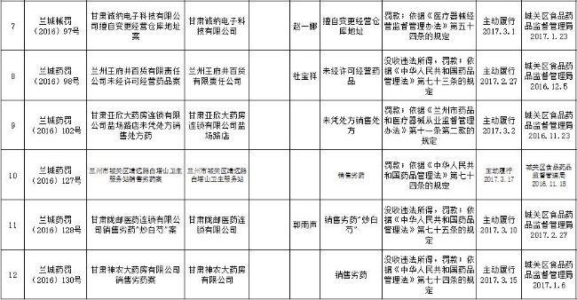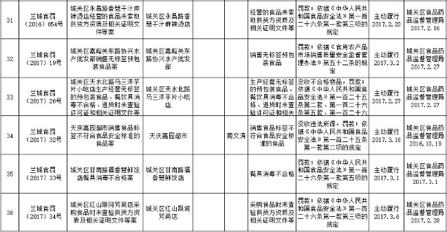 七里河区局行政处罚信息公开20170...