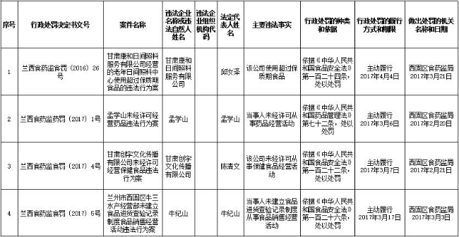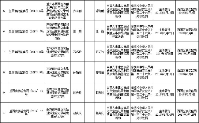 西固区局行政处罚信息公开201703