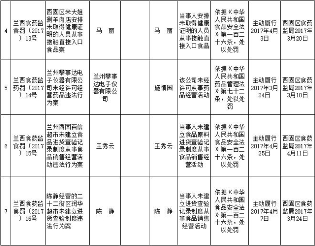 西固区局行政处罚信息公开201704