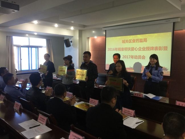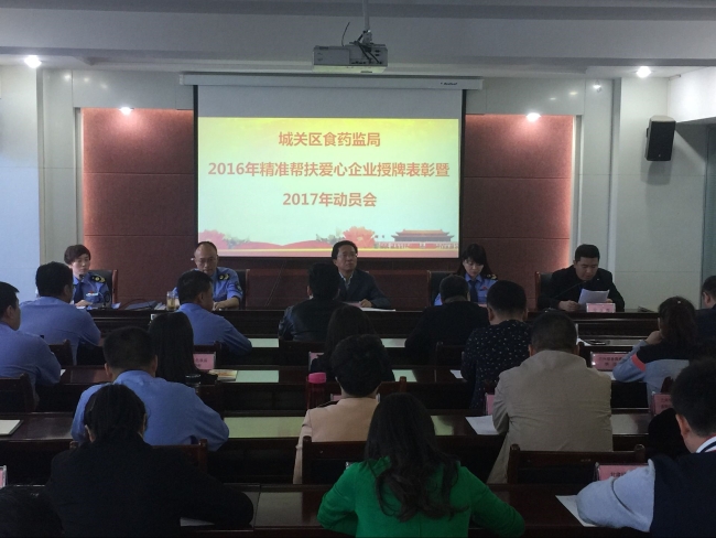 | 城关区食品药品监督管理局召开2016年度精准帮扶爱心企业授牌表彰会暨2017年双联行动精准帮扶动员会 |