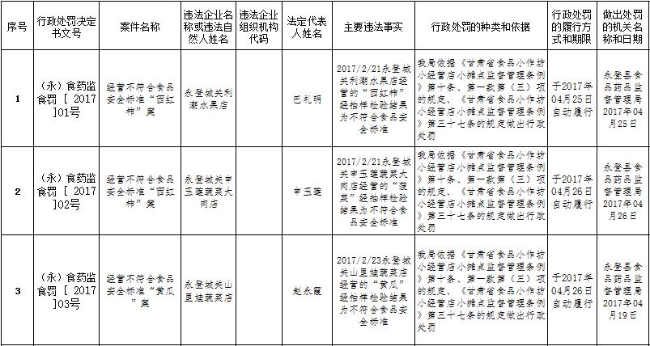 永登县局行政处罚信息公开201703