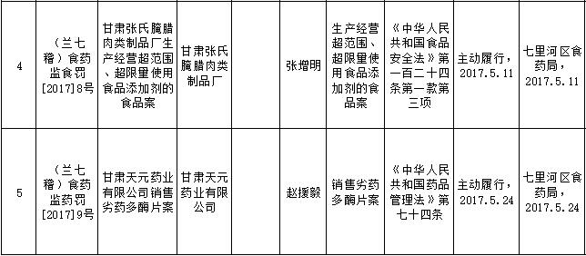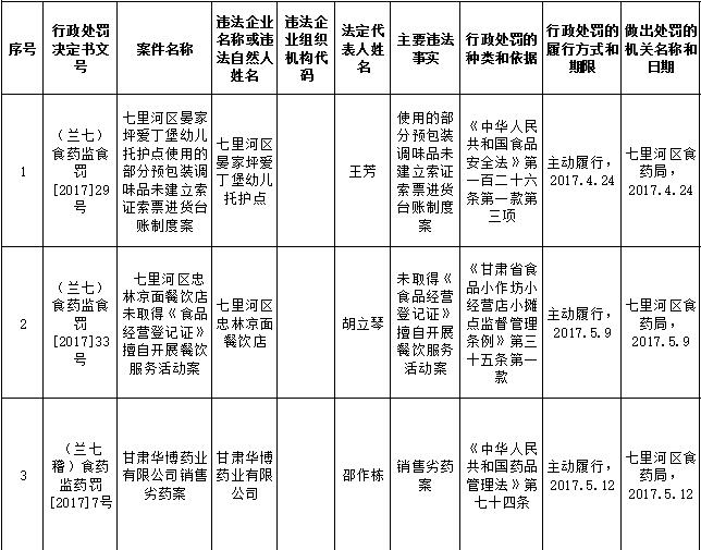 七里河区局行政处罚信息公开20170...